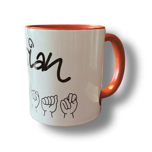 Tasse mit Name und Fingeralphabet nach Wunsch