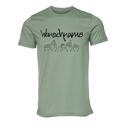 Inklusives Unisex T-Shirt mit individuellem mit Wunschname und Fingeralphabet
